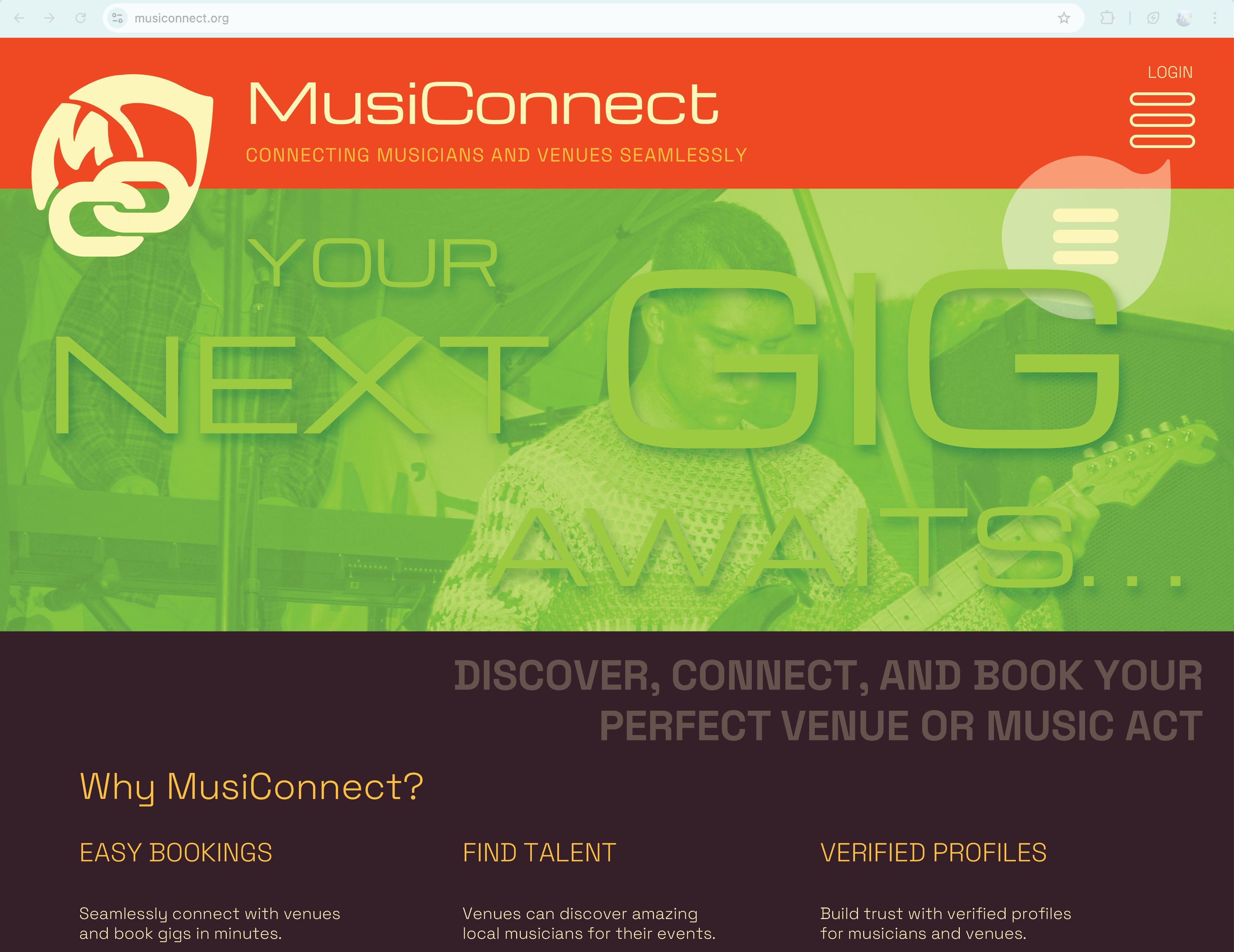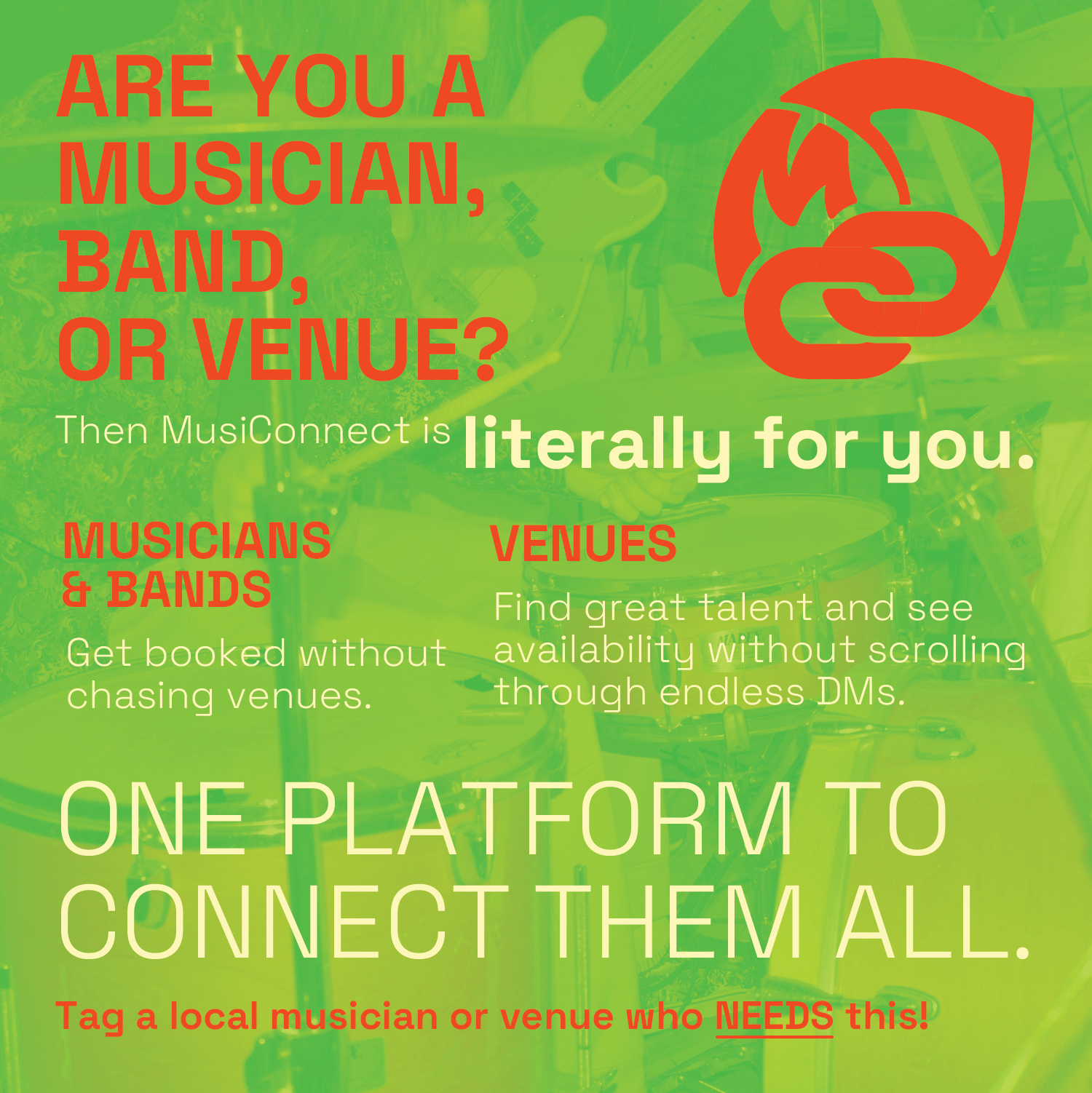 MusiConnect is a networking web platform for connecting local Boone bands and musicians with venues.